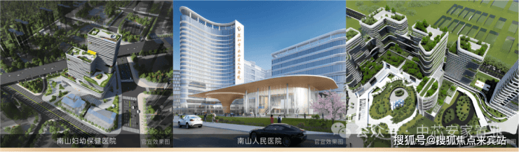 约3KM范围内:南山区人民医院(三甲)、南山区中医院(在建中)、宝安中医院(三甲)等覆盖多家优质医疗机构。