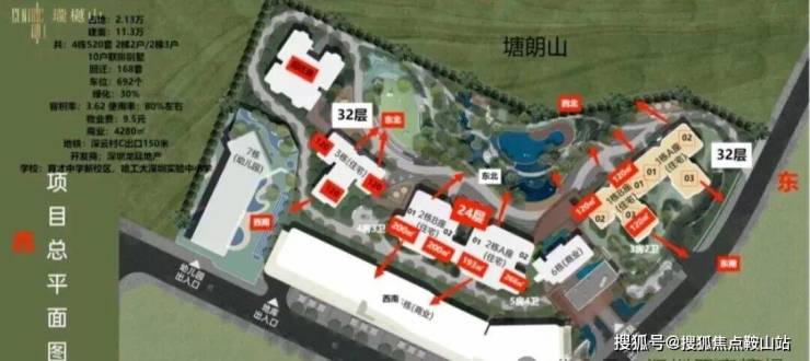 项目地址位于深圳市南山区桃源北环大道北侧塘朗山南麓,邻近深云地铁站。项目大体被山体包裹,西侧和南侧分别临近南坪快速路、北环大道两条城市快速路,其东侧还将建设侨城东路北沿线(建设中),所处片区相对割裂存在。