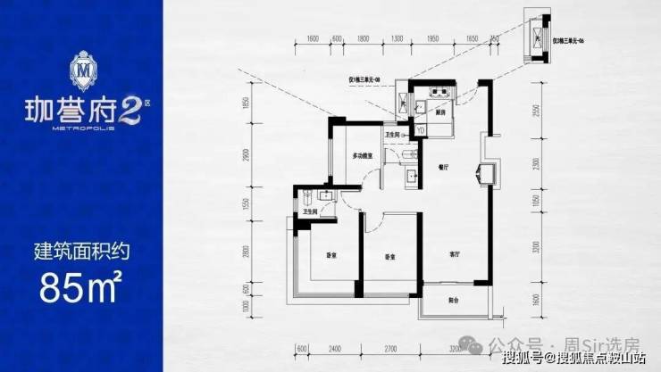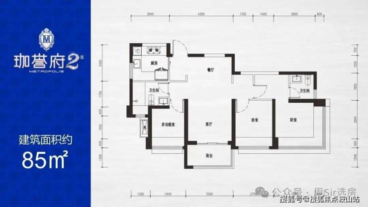 5、不加赠送得房率是77%,加上赠送也有85-90%的得房率,85平也做到了3房2卫,同比区域内比较核心的楼盘,得房率优势也是很明显的。