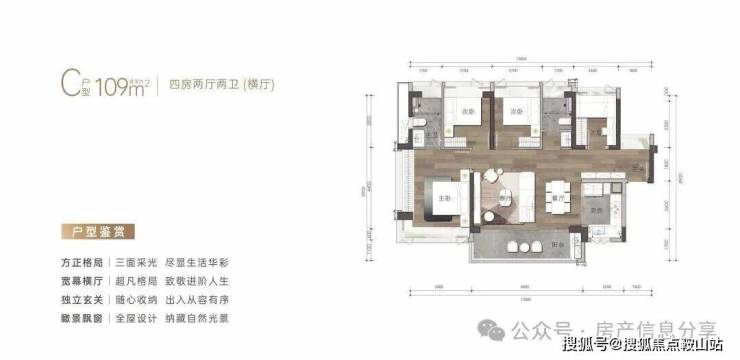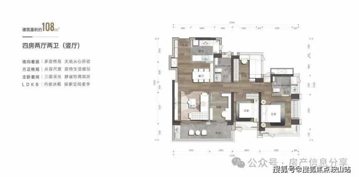 ※南向海幕四房,湾级封面:央企开发,品质保障,建面约 108-143 ㎡海幕纯四房,臻藏级南向湾海视野,格局方正、南北通透、高实用率。LDKB 人性化动线设计,270°转角飘窗主卧、步入式衣帽间等个性化空间。