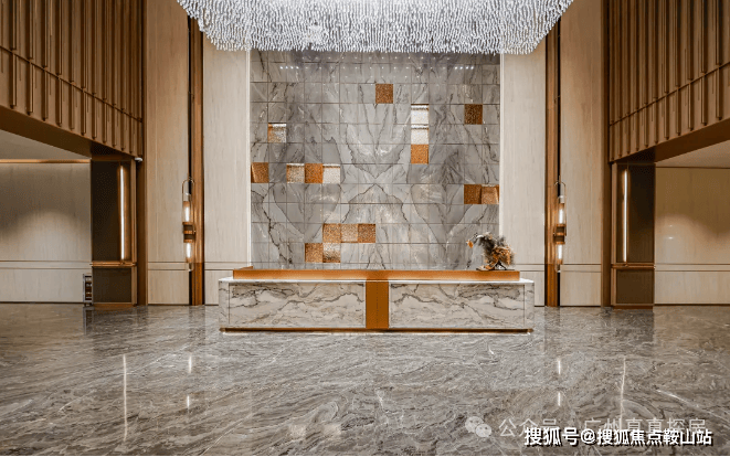 室内以中轴对称的天圆地方美学结构,配以名贵透光天然石材,勾勒出内敛稳重又不失中式精神内核的几何美。