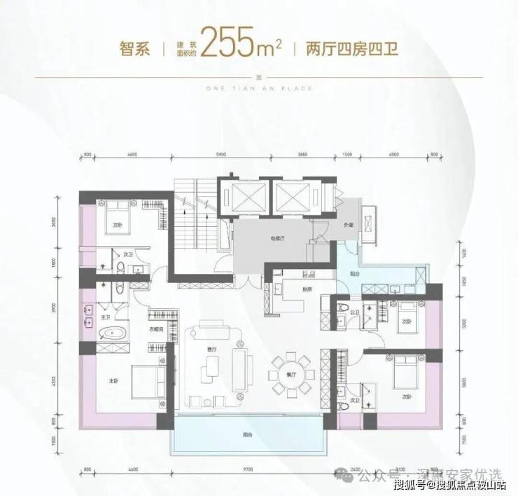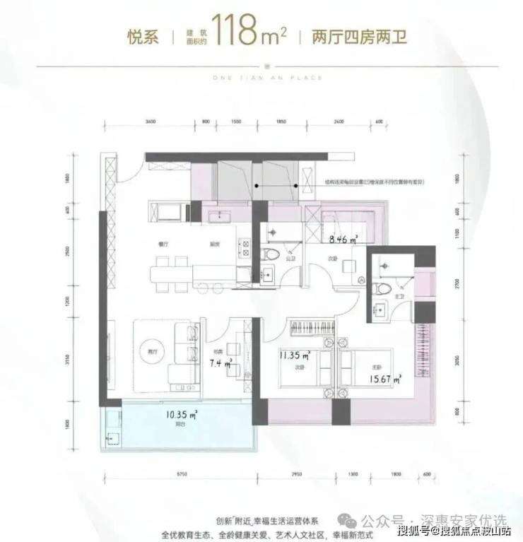 这个户型比较适合坂田的刚需改善需求,这个户型如果用市场上宣传的得房率(加上凸窗和阳台,得房率为100%。在配置4梯5户超低梯户比的情况下,这种得房率难为可贵。