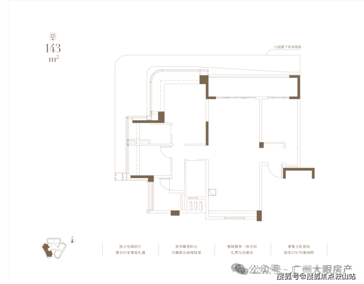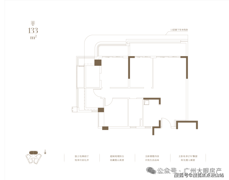 其中,约133㎡北侧看白云山,约143㎡西南向,约177㎡东南向。