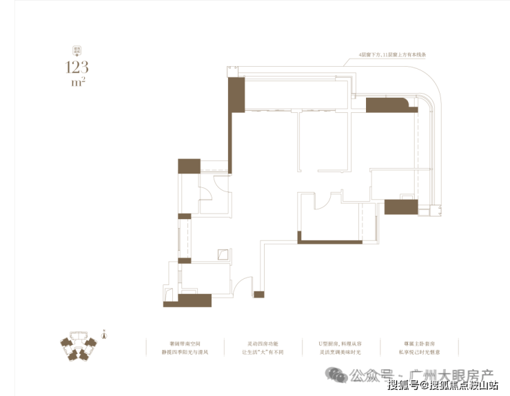 低区4-11层,约64户,主推建面约108-123㎡三四房,精准定位刚需改善群体;