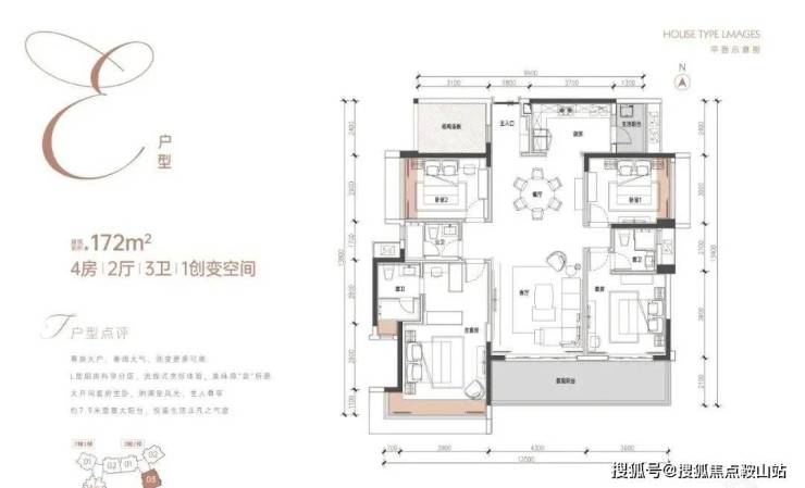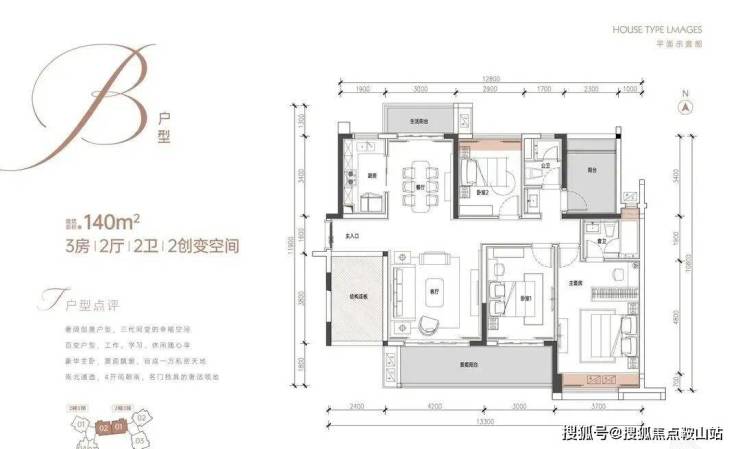 2栋1梯:103/128/140m户型;2栋2梯为两梯三户设计,有约140/172m户型,共计127套房源。(精装)