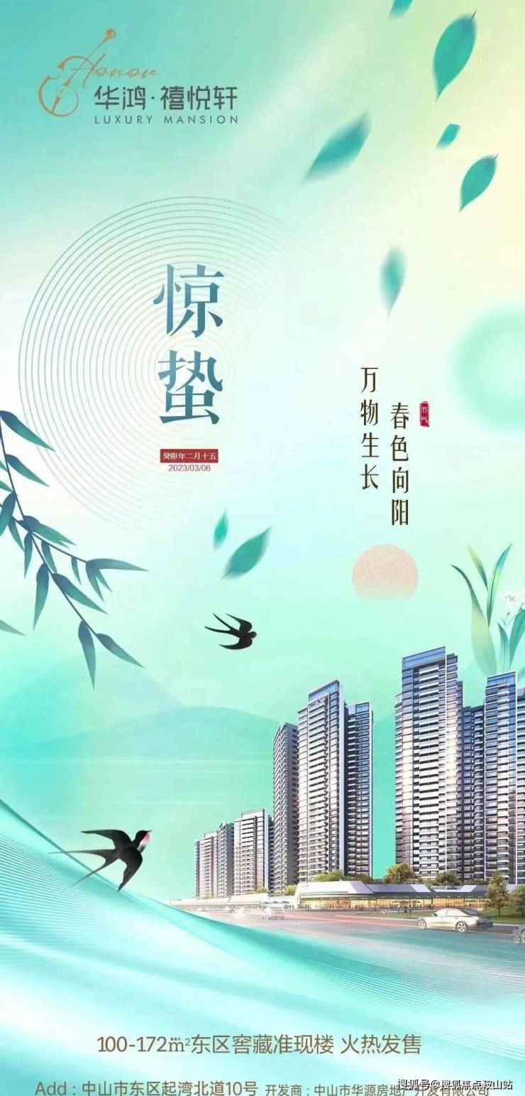 华鸿·禧悦轩,即华鸿水云轩六期,占地约84亩,规划建设6幢高层和体育中心与幼儿园等配套。项目由深耕中山23载豪宅开发专家——华鸿地产,汲取华鸿水云轩,华鸿水云四季,华鸿珑悦轩,华鸿璟悦轩等豪宅项目之开发经验,再次升华并倾注匠心打造的中山又一传世恒产。