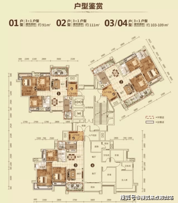 ① 3+1房2厅2卫/约103平方米/南北对流双阳台