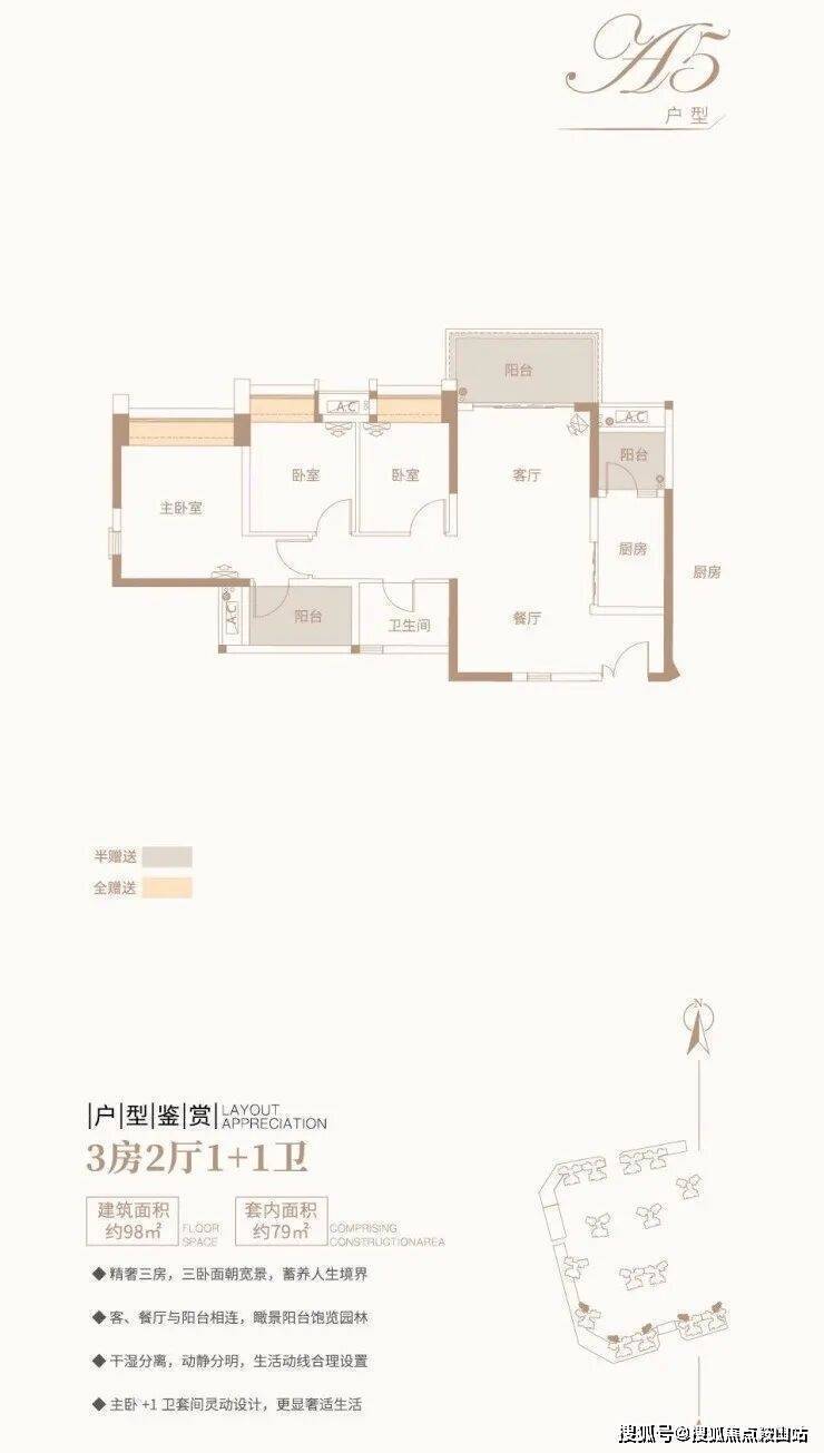 ⑤ 3房2厅1+1卫/约98平方米/精奢三房,面朝宽景
