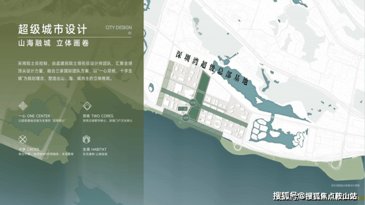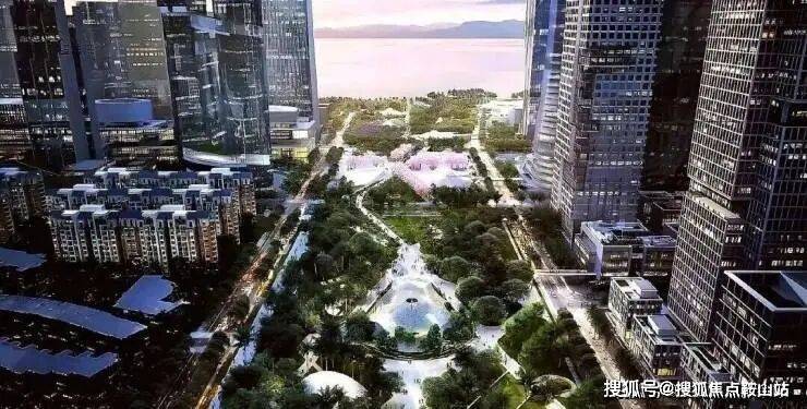 以中央绿轴为南北轴线,连接塘朗山与深圳湾,形成"通山达海"的生态廊道。