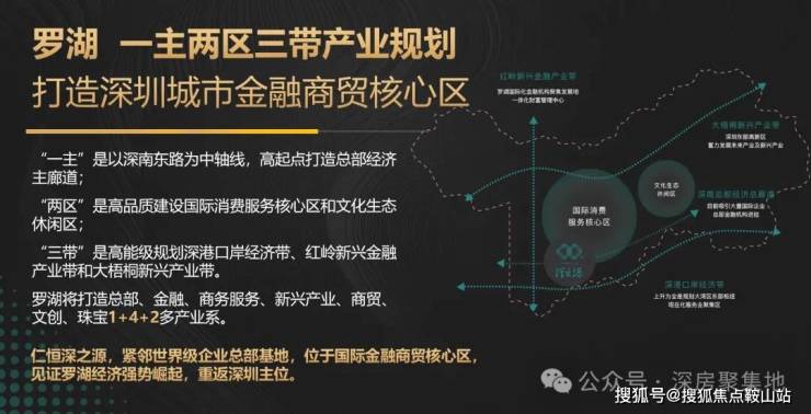 罗湖区产业发展“十四五”规划提出要构筑“一主两区三带”全新城区发展定位,将深南路为中轴线,打造总部经济主廊道,总部经济主廊道,未来将集聚百家高新企业总部,营收达1500亿元,打造深港区域性总部经济中心。