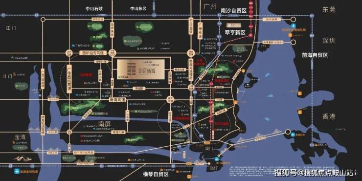 新城规划提速,珠中深度融合,枢纽核心地位凸显,提速珠港澳1小时生活圈,5分钟珠海主城,20分钟中山城区,25分钟抵澳门,40分钟抵港深