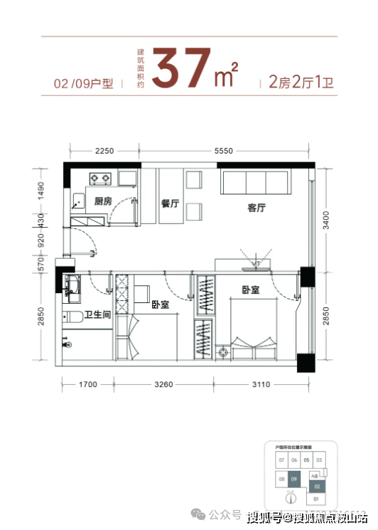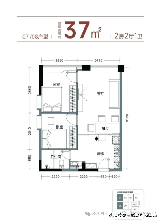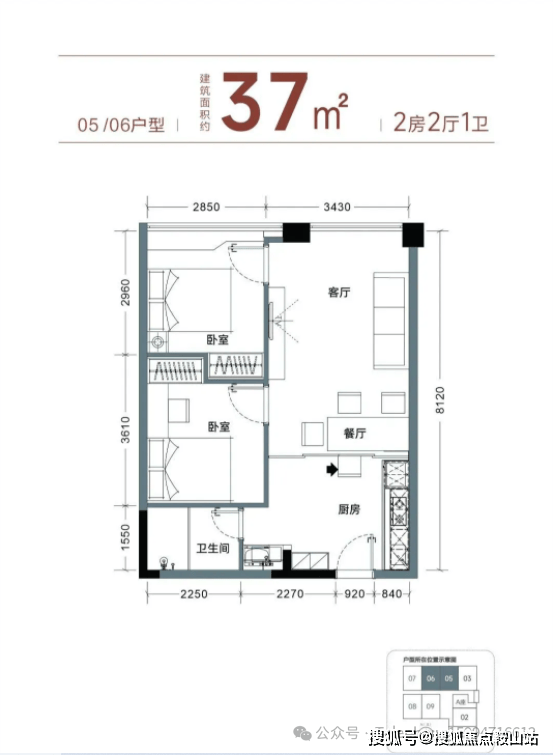 【产品面积】约37㎡小两房或者小三房(实际套内使用面积接近54㎡)
