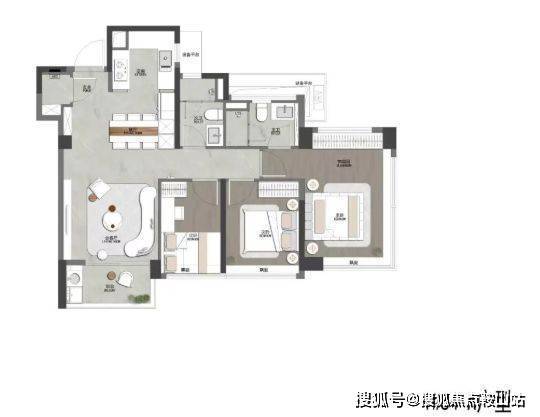 南北对流双阳台的户型,超宽阳台和超宽客厅,尺度感很强。