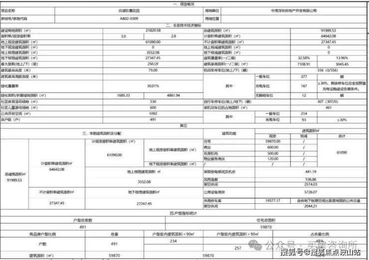 总规划491户,全部都是商品房,1-4栋是2梯4户,5栋是2梯5户设计,户户朝南,地下室有2层,规划556个车位,车位占比约1:1.13。