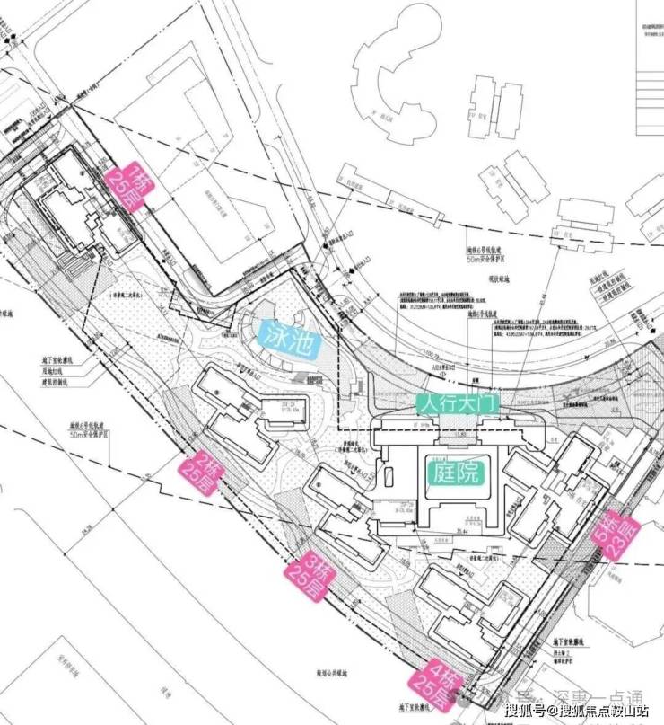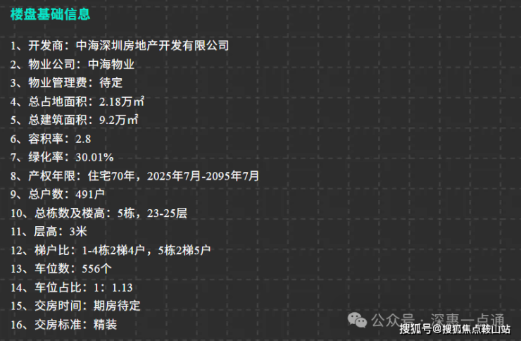 项目信息:项目总占地面积约3.5万㎡,总建筑面积约20.5万㎡,容积率约5.0,规划6栋45-55层超高层住宅,共约400户,产权70年,精装交付,物业费预估9.8元/㎡/月,预计2027年底交付。