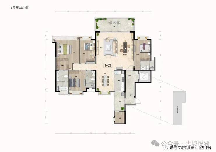 超阔绰一体化横厅,彰显荣耀人生。双套房配置,四房顶尖之作。