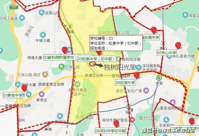 项目附近有多所小学,根据学区地图划分,小学方面,独树阳光里是处于由东昌小学、布心小学、东晓小学等8个小学组成的共享学区范围内,其中距离项目最近的是东昌小学,离项目仅197米;初中方面,独树阳光里是在松泉中学学区范围内,除此之外还有深圳市松泉实验学校、深圳奥斯翰外语学校及东湖中学等,教育资源整体丰富。