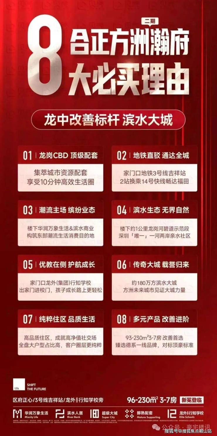 合正方洲位于龙岗区龙岗街道,临近地铁3号线吉祥站,由深圳市中龙信合投资有限公司(深圳市合正房地产集团有限公司、信达投资有限公司共同持有企业)开发;项目最早于2021年10月入市,目前已预售5个批次合计2449套住宅,备案均价约4.97万/㎡。