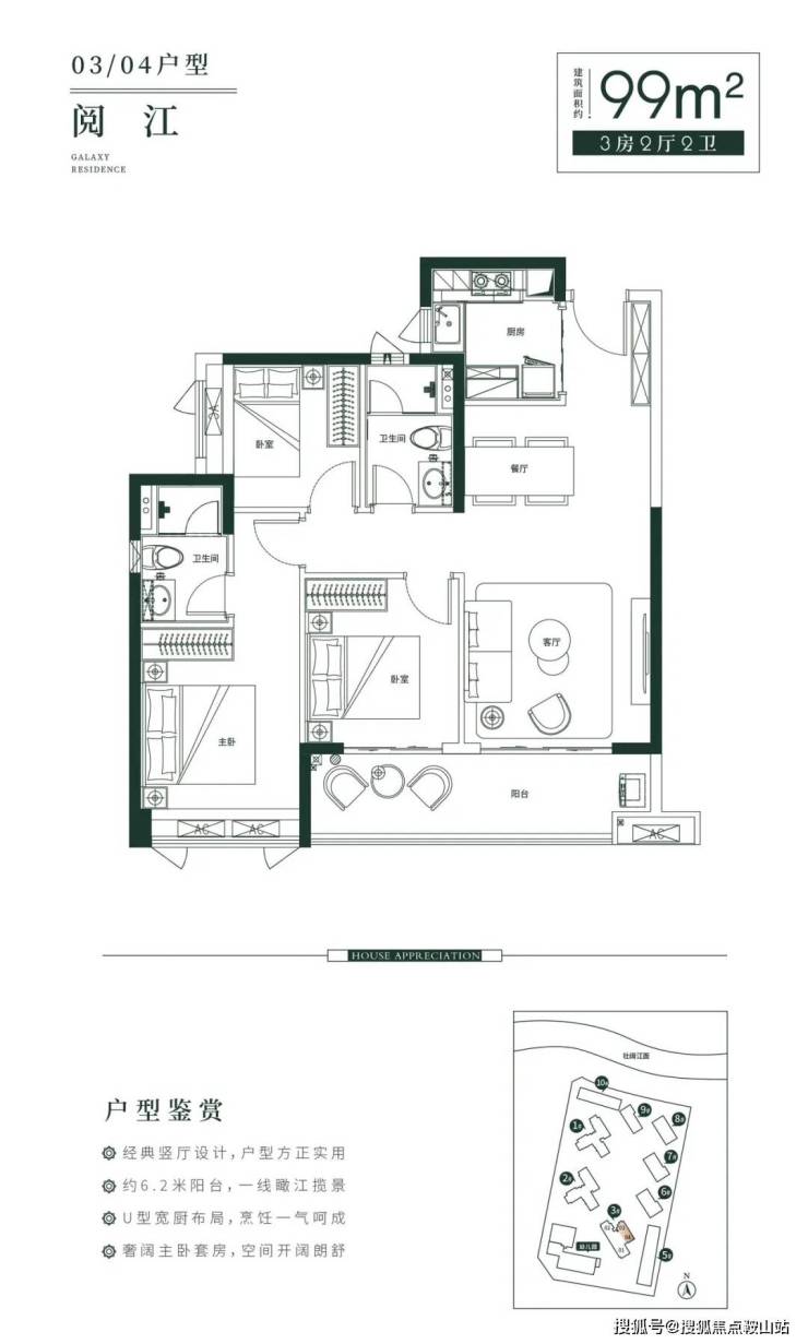 经典竖厅设计,户型方正实用;约6.2米阳台,一线瞰江揽景;U型宽厨布局,烹饪一气呵成;奢阔主卧套房,空间开阔朗舒。