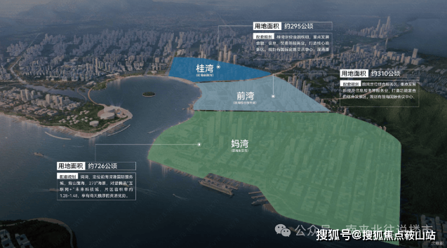 ①妈湾,三湾中体量最大的,比桂湾(295公顷)和前湾(310公顷)的总和还要多出20%,容积率仅为1.28-1.48,留白净地多;