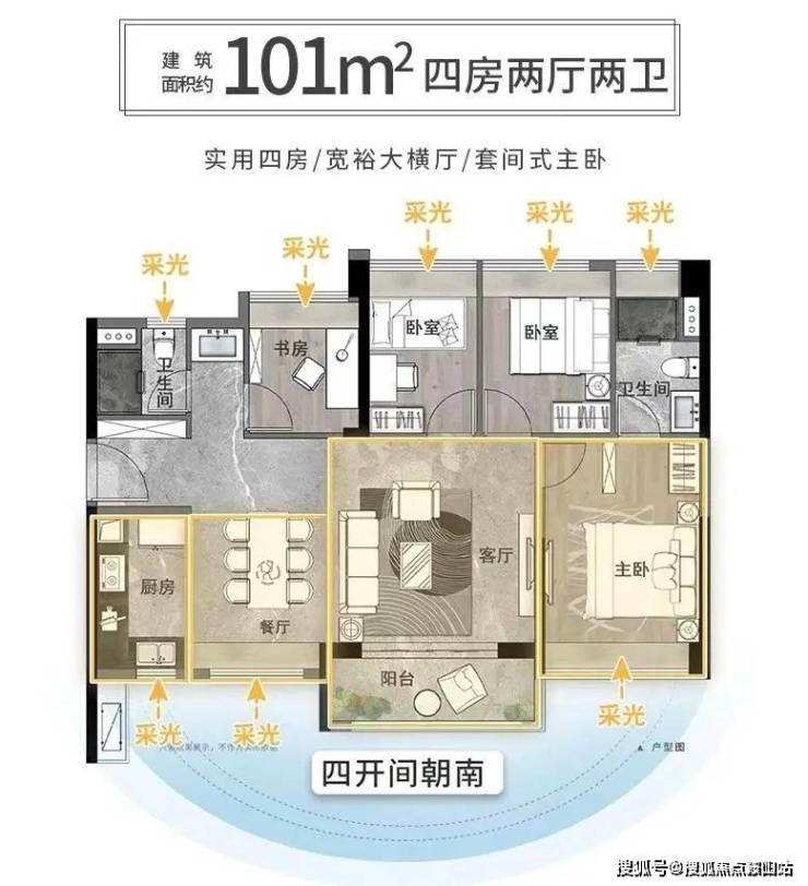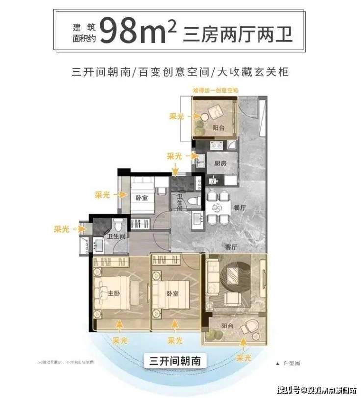 【高层户型鉴赏-超95%南向户型设计,高拓展高赠送】