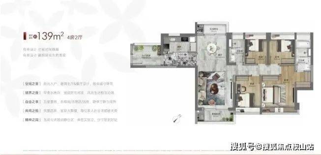 全屋智能化铺设,提升生活便捷性 。大主卧设计,空间宽敞舒适 。双阳台设计,增加采光通风与活动空间 。适合人口较多的家庭,满足不同家庭成员的生活需求 。