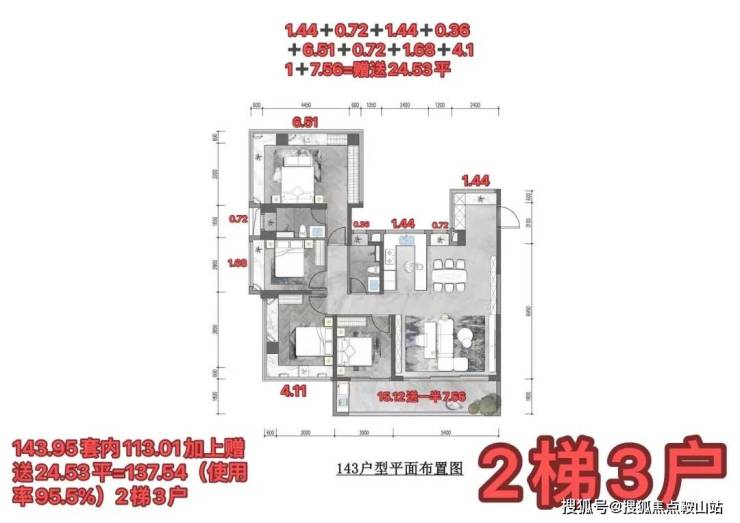 ▻创新Z形类板楼:两梯三户,三面采光,无自遮,超 80% 得房率