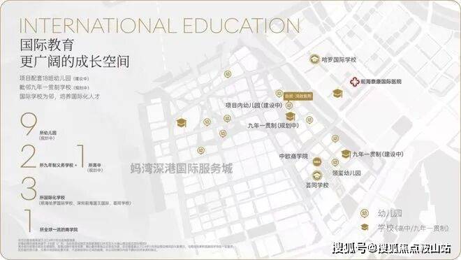 学校:『湾啟紫荆府』项目自身配建有一所18班幼儿园,南侧紧邻一所36班九年制学校,东侧隔前湾公园是哈罗国际学校;1公里范围内还分布有南二外妈湾学校、南二外前湾学校、荟同国际学校;根据法定图则,除了上述学校外,妈湾未来还将新增至少两所72班九年制学校。
