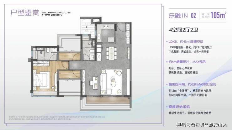 ② 中海江泰里,将府系产品的优势继续应用于里系产品,不仅保留了 LDK、精致收纳、厨房岛台,更进一步升级 LDKB,将原有的客厅、餐厅、厨房三位一体,升级为“客厅、餐厅、厨房、可变空间”四位一体,实现家庭互娱大方厅。