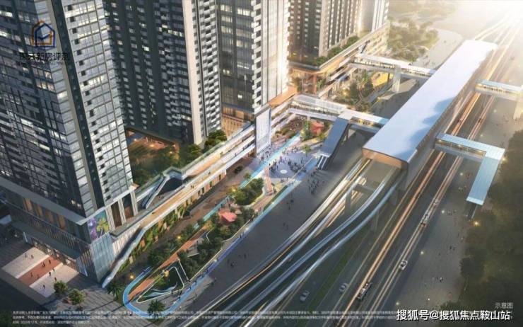 垂直交通场景:多首层设计,空中连板、无风雨连廊等,形成住宅、商业、办公与地面公交、空中地铁的接驳体系。