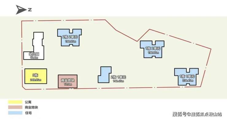 户型分布:分南、北两地块,共 5 栋1+4布局,1栋公寓250米,4栋住宅分别是约150米、200米、200米、240米