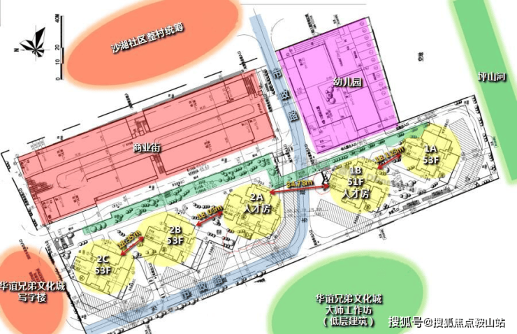 项目位于深圳市坪山区碧岭街道汤坑社区,碧沙北路以西,龙勤路以南。项目占地面积3.34万㎡,总建面23.9万㎡。共规划2栋5座51-53F高层住宅建筑,其中项目1B座和2A座栋为51F的人才住房,1A/2C/2B座为住宅商品房。另外,项目自带幼儿园和风情商业街区