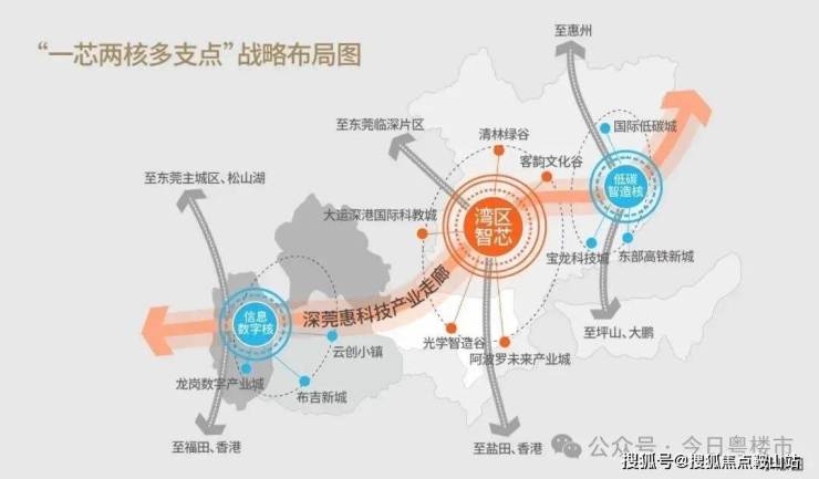 龙岗“一芯”“两核”“多支点”主体功能布局,大运新城作为“一芯”湾东智芯的代表,位居“东进战略”最前沿,也是港澳大湾区经济腹地、辐射粤东北的“桥头堡”打造深圳都市圈的“东核心”。