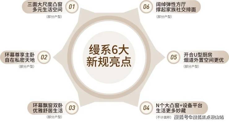 ◎中轴新规 缦系产品建面约92-173㎡三至四房缦系新规产品, 六大设计亮点,定义人居新境。