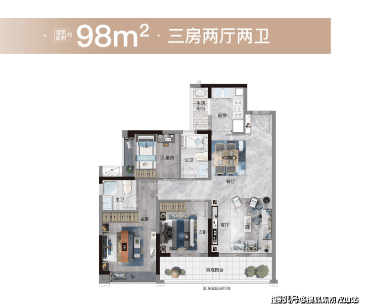 1. 户型设计:98-196㎡全南向户型,对流采光优越