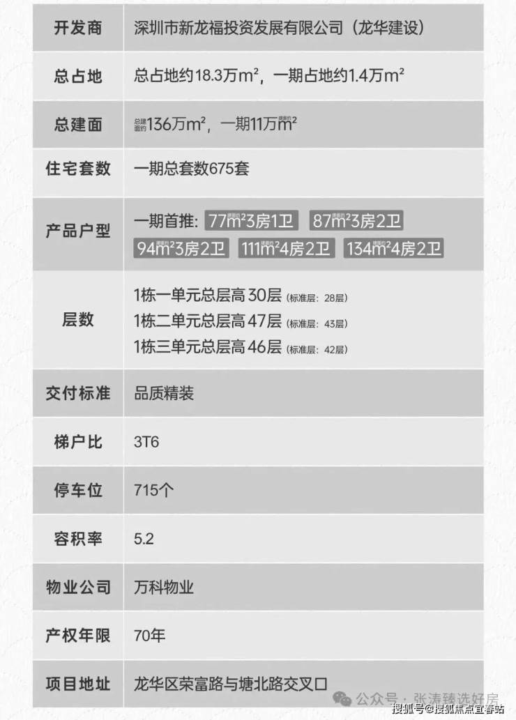 龙华观澜,玖珑瑧境·新玥(备案名:福城境未来家园)计划将在2026年3月份取证入市,本次首推1栋1单元,共167套房源,面积有77㎡的3房1卫,87-94㎡的3房2卫,111㎡的4房2卫户型,全南朝向,也是观澜第二个新规建设的新盘,得房率高达98-105%。