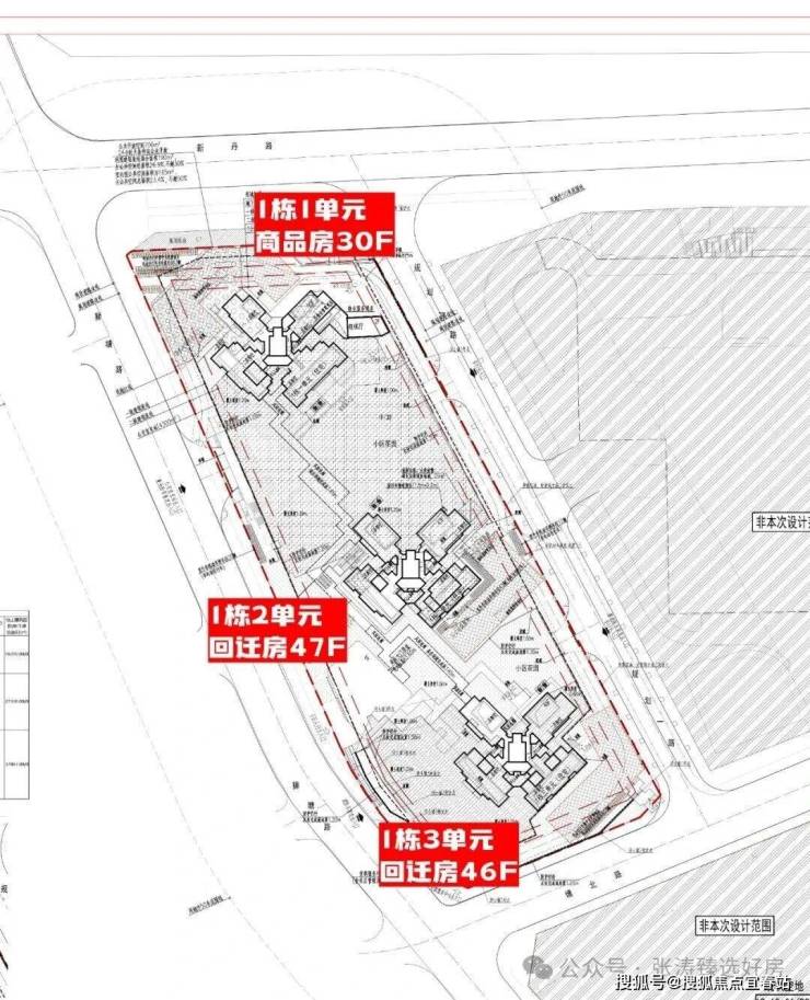 福城境未来家园(1期),总占地面积约1.41万㎡,总建筑面积约10.65万㎡,其中计容建筑面积约7.27万㎡,容积率5.2,共由3栋住宅组成,其中1栋1单元商品房30F,2梯6户设计,1栋2单元回迁房47F,1栋3单元回迁房46F,均是3梯6户设计。