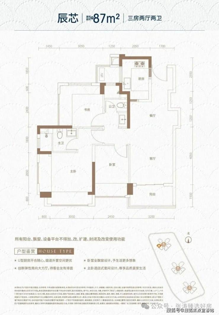 94㎡的3房2厅2卫(-2),设计的是横厅南北通透格局,独门独户,进门入户玄关,客餐厅5.7米开间,LDKB一体化,全屋10面飘窗,主卧南北通,U型厨房,卫生间干湿分离,得房率约93.73%(包含赠送),阳台主朝西南向。