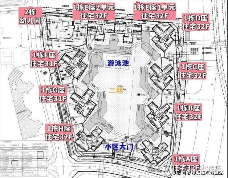 二期总建筑面积约20.74万㎡,计容建筑面积约14.24万㎡,共由9栋总高32F的住宅组成,另外还规划有1所9班制幼儿园,总规划1225户,全部是商品房,小区还规划了菜市场,公交首末站,社区服务中心等,停车位1548个。