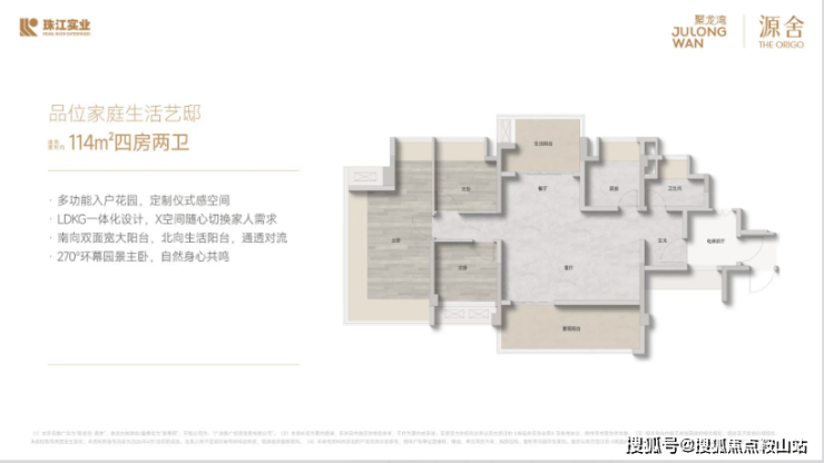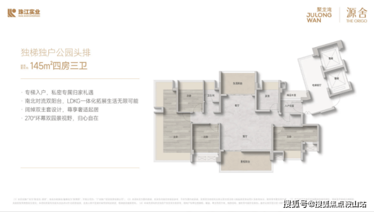 全南向滨水: 建筑面积约90-145㎡的户型,主打全南向视野。特别是约145㎡的四房,拥有专梯入户的私密礼遇,LDKG一体化设计(客餐厨阳台联动),极大地拓展了生活的可能性。