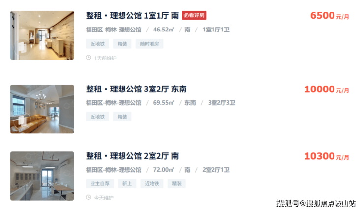 上梅林片区居住氛围浓厚,两房租金普遍在6000以上,理想公馆45㎡租金6500,72㎡两房租金10000以上,华强创领寓85㎡两房租金也高达9000-11000元/月。