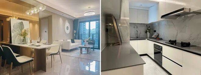 开放式厨房+客餐厅一体化设计,节省空间,明卫,部分户型带生活阳台。