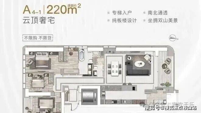 160-220㎡ 2-3+1房(专梯入户)