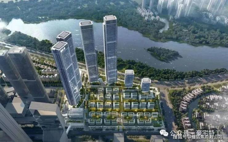 业态组成:4栋51-63层公寓(层高3.6-3.9米,含388米地标主塔T1)、2栋高层办公楼、19套独栋董事公馆、16套合院别墅及约1.4万㎡高端定制商业