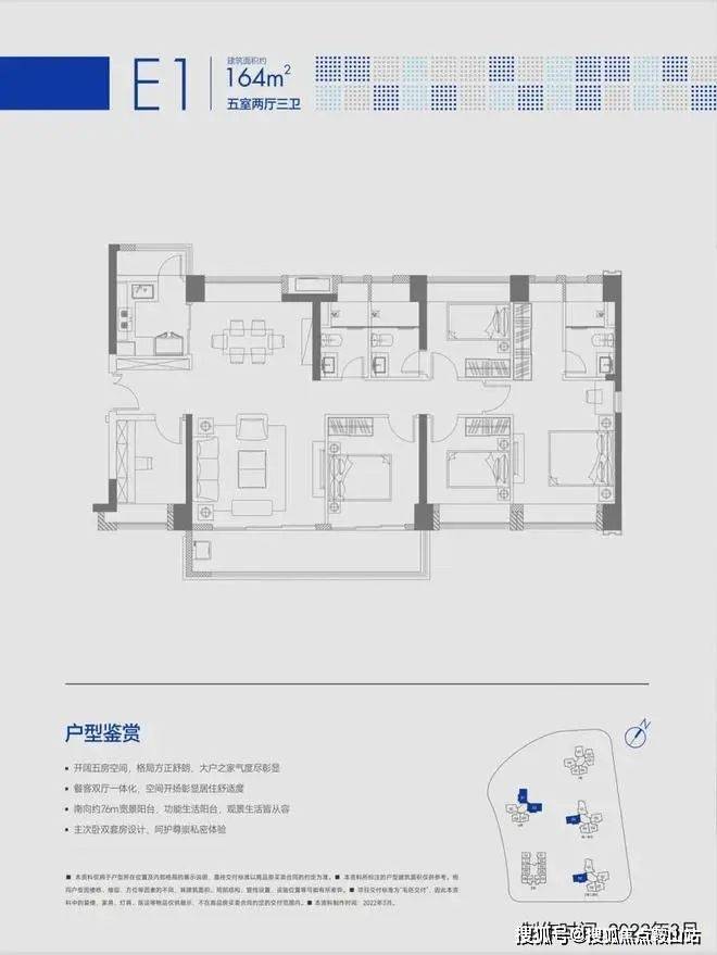 【泓园E1户型】约164㎡五房两厅三卫