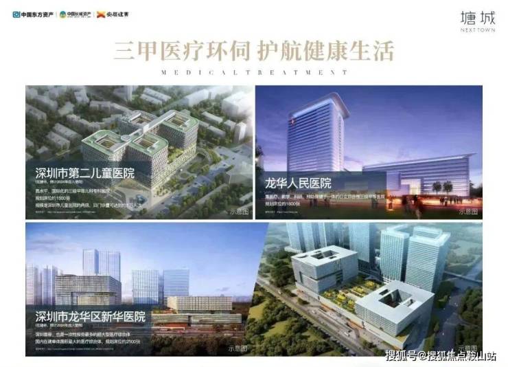 集萃深圳市新华医院(在建中)、龙华人民医院、深圳市第二儿童医院(在建中)、广州医科大附属医院(规划中)等市属公立三甲医院高标准医疗服务体系,护航健康生活。