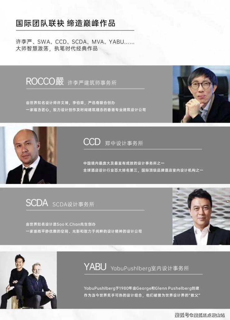 许李严、CCD、SCDA、YABU、ALT、SWA、MVA、迈进等国际顶级大师团队的智慧在此集结。