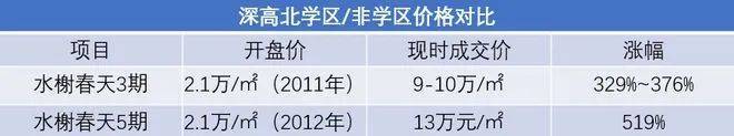 深高北学区/非学区价格对比示意图
