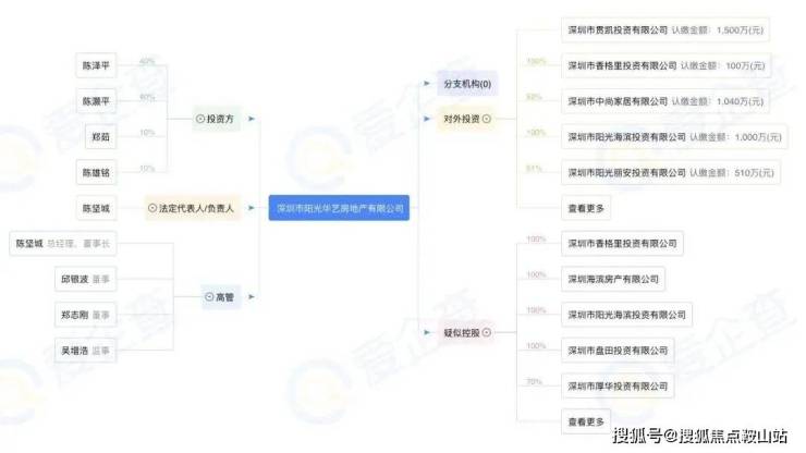 阳光华艺房地产公司已深耕深圳23年,主营房地产开发,旗下有建筑施工企业、物业管理公司、酒店经营管理公司等,运营有自有品牌酒店,已经成功开发了阳光华艺大厦、南山城市花园、流塘阳光花园、阳光海滨花园等多个旧改楼盘,在行业内颇有名气。
