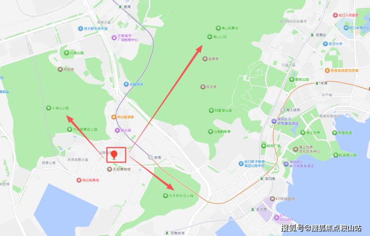 周边有【大南山公园】、【小南山公园】、【文天祥纪念公园】、【赤湾公园】、【兴海公园】、【月亮湾公园】等;